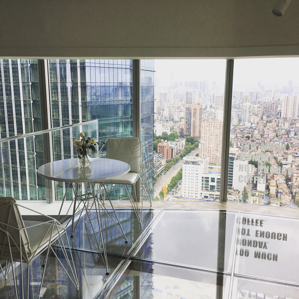 一楼是一个舞蹈教室,一般白天没有人。店主将房子分成两层,以用玻璃隔空出了一个“空中地面”!就如同玻璃栈桥一样!