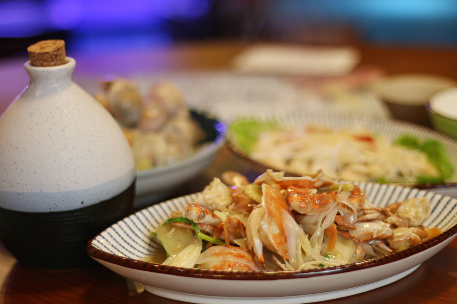 我家先生海鲜餐厅的炒海鲜系列也是很受欢迎,香辣花甲的用料十足,虽然看起来浓油赤酱的一盘,但是真材实料的小米椒所释放出的辣味其实并不夸张,同时淡淡的甜味加入起到了提鲜解辣的效果,所以即使不太擅长吃辣的人也可以大胆尝试。而姜葱石头蟹与花甲相比是另一番韵味,微微的姜辣配上大葱的回甘,极大的激发出石头蟹的鲜甜,咔嚓一口,咬开蟹壳,肥厚鲜嫩的蟹肉一览无余,嘴里稍稍一吸,细密的蟹肉就一股脑的伴着姜葱到了唇齿间,无需费力的咀嚼,仅用舌尖一抿,甜、鲜、嫩、滑都融化在了味蕾间,一种妙不可言的美味体验油然而生。