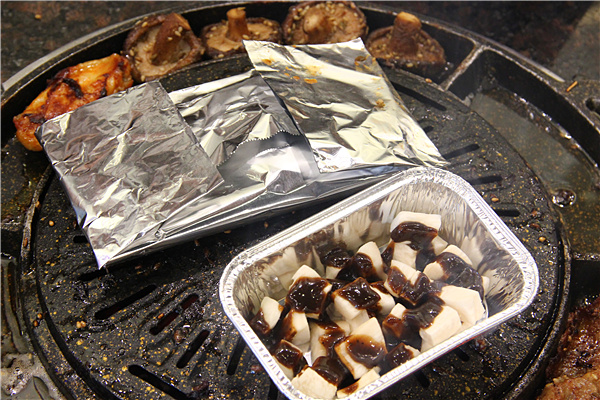 秘制牛肉同样是腌制过的,端上来便知是上好食材。烤2分钟后马上吃掉,才能品尝到至嫩的口感;鸡脆骨用锡纸包起来烤,免得烤的“胡蹦乱跳”,吃起来嘎嘣脆,很快便一扫而空;来自日本的大崎蟹柳,细腻绵软的口感让人大呼过瘾,有大口吃蟹腿的感觉;最魔性的黑椒杏鲍菇,味道层次丰富,估计掉到地上都能弹起来。一口一个不过瘾,曾经有客人点了8份。
