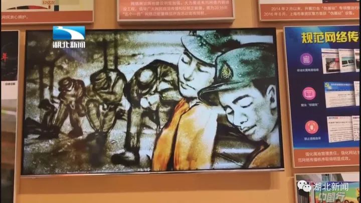 湖北广播电视台长江云制作的沙画《不忘初心 砥柱中流》,也登上成就展。