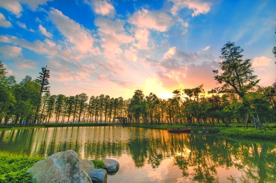 华侨城生态湿地公园呈现出“城湖融合”的美丽景象