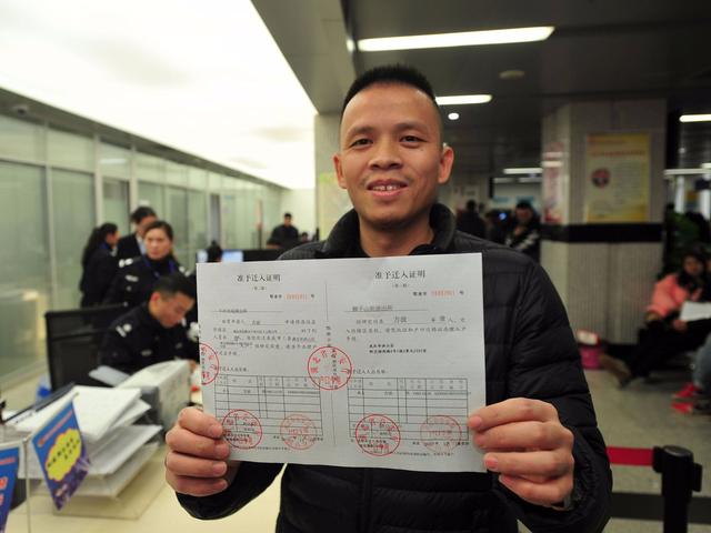 18日下午3时许,来自仙桃市的男子方波在洪山区政务服务中心领取了落户武汉的户籍《准予迁入证明》。这是武汉给积分入户人员颁发的第一张准迁证。