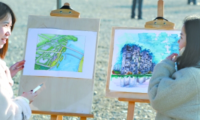 大学生现场绘画长江青年城和长江新城 记者周超 摄