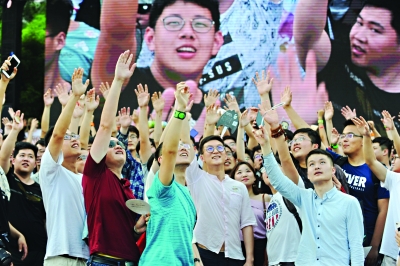 “这里不光是年轻人的大聚会,也是时代的象征。不同的文化融合在一起,让人感受的却是幸福的生活。”唱完《在此》,韩磊看着两江四岸的美丽夜景感叹:“我感受到武汉这座城市浓浓的国际范儿,突然就想到‘未来在此’,我相信武汉未来的发展会更厉害”。
