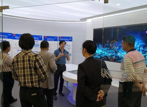 图为:在硚口区创智园听取负责人介绍“城市智脑”系统