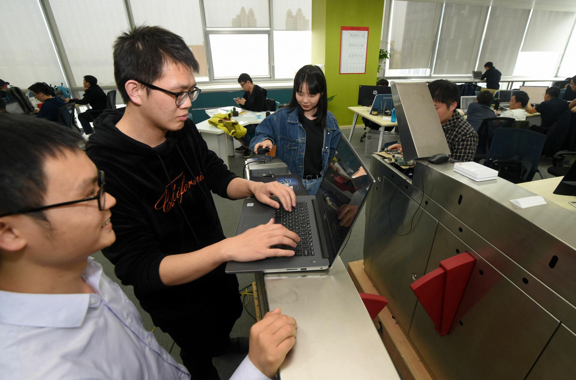 工作人员正在对系统进行调整设置。记者詹松 摄影