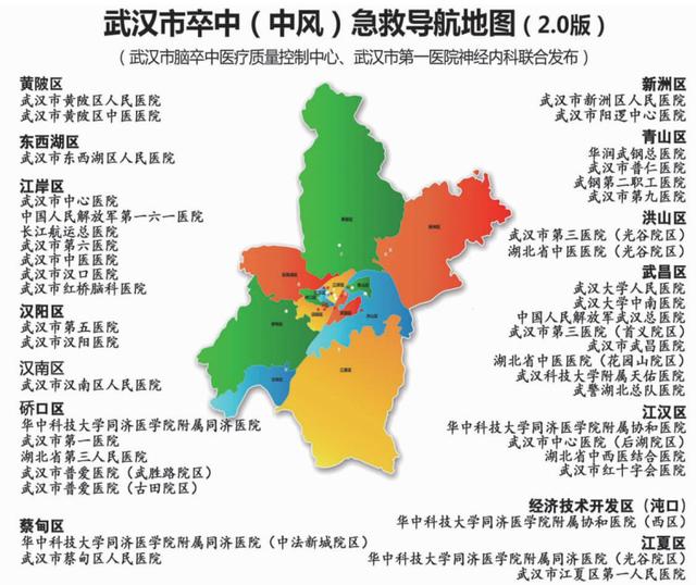 市民知晓率低、时间延误、急救流程不规范是主要原因。今年2月10日,武汉成立“区域卒中专科联盟”,发布升级版的“武汉市卒中(中风)急救导航地图”,武汉地区和“1+8城市圈”的54家医疗机构编织起“1小时救命网”。根据“地图”,救护车和家属能迅速找到离患者最近具备卒中救治能力的医院,第一时间得到规范化救治。