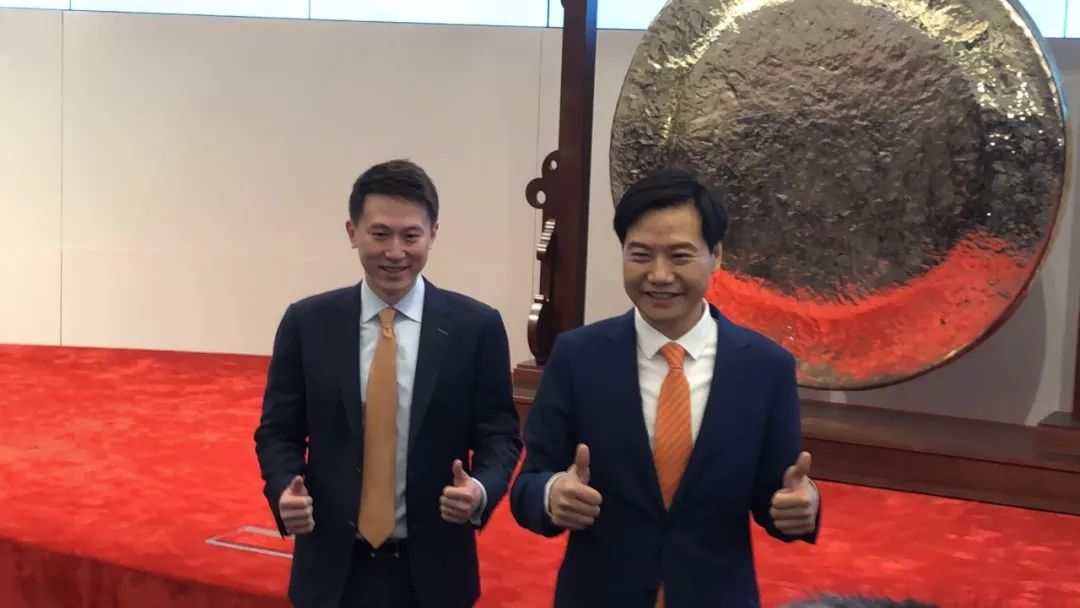 雷军与CFO周受资在敲钟现场